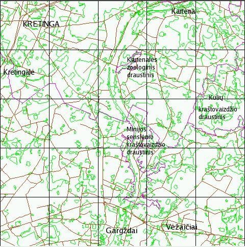 ![]() Kretingos apylinkių keliai, žemėnaudos, saugomų teritorijų ribos. LTDBK50000-V