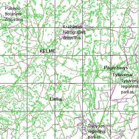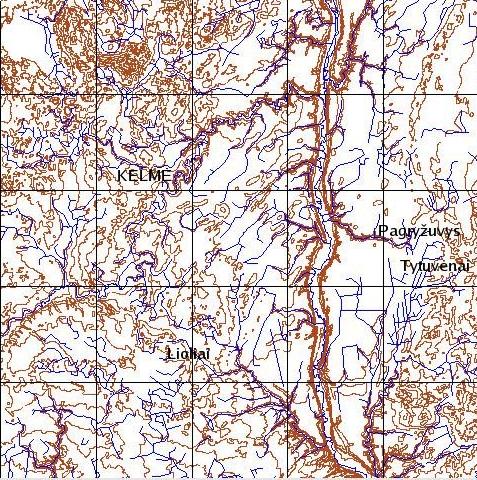 Valstybinė geodezijos ir kartografijos tarnyba, 1998.Liolių apylinkių reljefas ir hidrografija. Lapo "Kelmė" elev.00 ir rivers.e00 sluoksniai GRASS-61 formate |