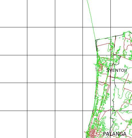 Valstybinė geodezijos ir kartografijos tarnyba, 1998. Šventosios ir Palangos apylinkių hidrografija, keliai ir žemėnaudos. Lapo "Palanga" rivers.e00, infra.e00 ir km52.e00 sluoksniai GRASS-62 formate. |