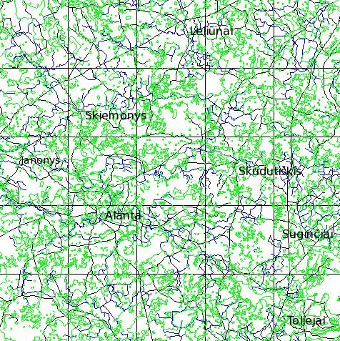 ![]() Žemaitkiemio apylinkių reljefas ir hidrografija LTDBK50000-V GRASS-57 formate. (pilki plotai yra klaidos, konvertuojant rivers.e00 sluoksnį) |